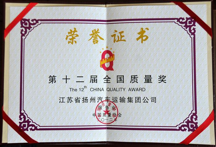 公司榮獲第十二屆全國質(zhì)量獎