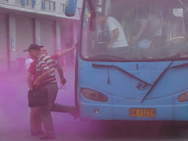 為保證演練活動安全、有序進行,集團公司制定了詳實的演練方案,進行了周密的部署,召開了演練工作布置會議,要求各單位分管安全領(lǐng)導(dǎo)和安管人員做安全護導(dǎo)員,負責演練過程的安全,維持演練的秩序及意外情況的應(yīng)急處理。演練現(xiàn)場大客車起火,乘客在駕駛員的指揮下迅速有序下車逃生,來不及從車門逃生的旅客正確使用逃生錘砸碎車窗玻璃進行自救逃生,整個疏散逃生過程在3分鐘內(nèi)完成。