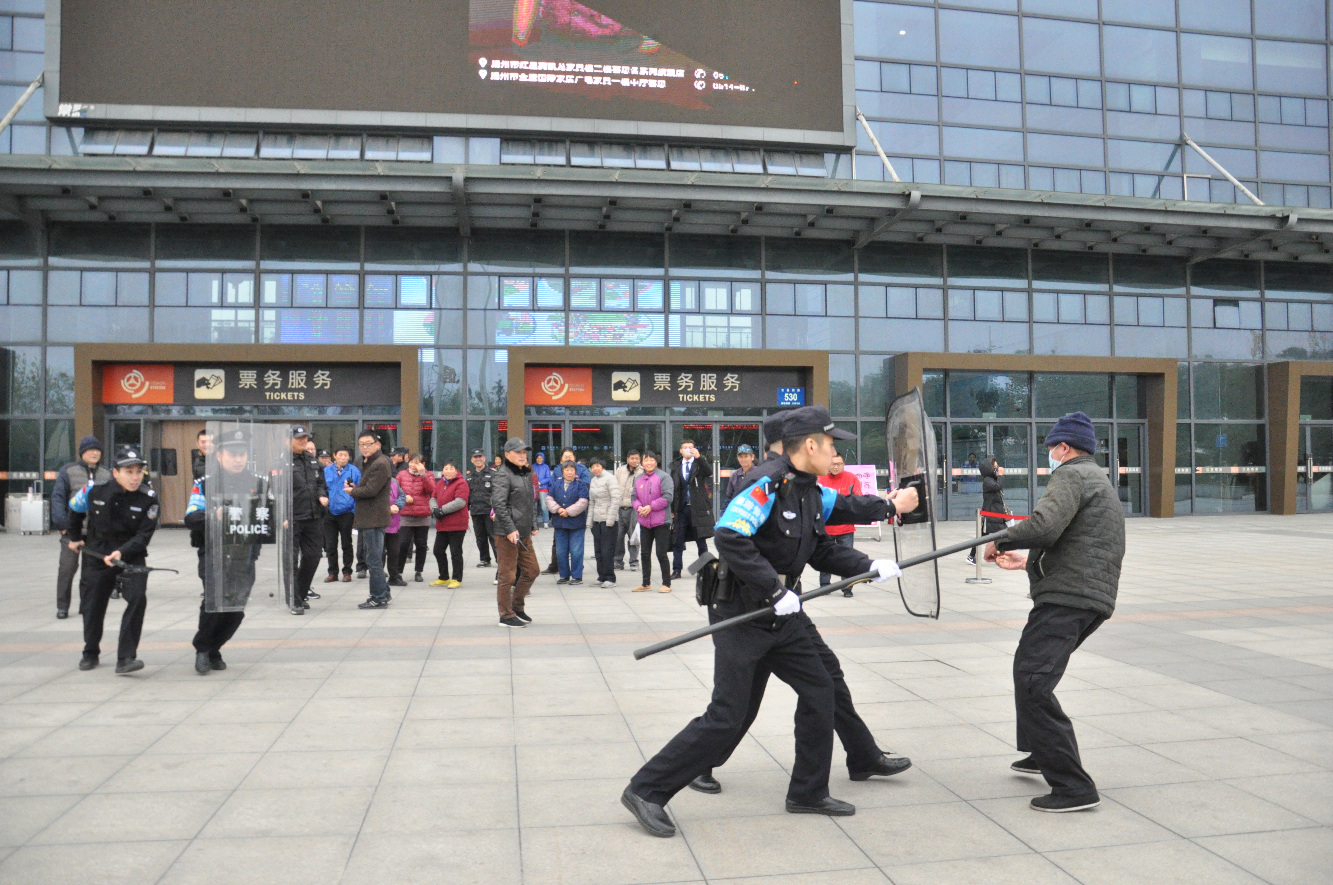 為有效防范公共場(chǎng)所可能發(fā)生的暴力恐怖事件,加強(qiáng)車站工作人員安全防范意識(shí),提高對(duì)突發(fā)事件的應(yīng)急處置能力,12月7日下午,揚(yáng)州站聯(lián)合揚(yáng)州市公安局公交治安分局汽車總站派出所,在站前廣場(chǎng)開(kāi)展年度反恐防暴演練。