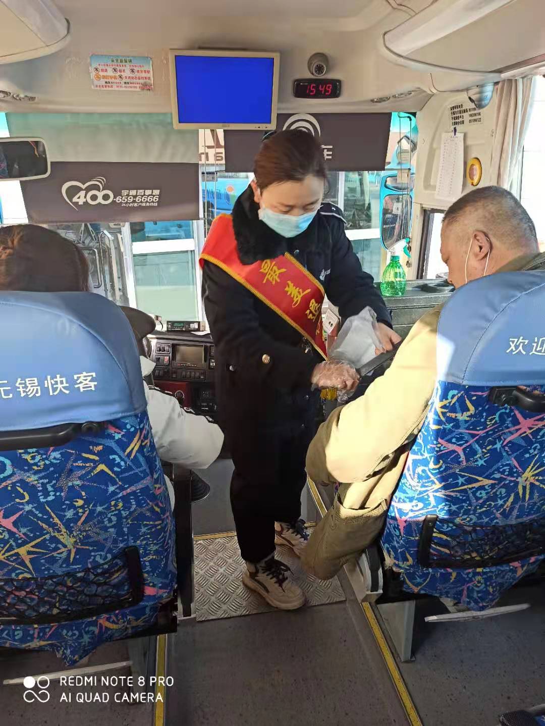 “您乘坐的車輛已經(jīng)消毒過,請(qǐng)放心上車…,老人家,你倆戴的口罩破了,我這有新的,請(qǐng)你換上…,請(qǐng)大家保持一米距離檢票,時(shí)間充裕,不會(huì)耽誤大家行程…,請(qǐng)大家檢票上車后,系帶好安全帶,口罩不能摘…”。一連串的溫馨提醒和戴著口罩仍在眉宇間“跳躍”著的笑容,讓旅客感到十分暖心。口不停、手不停每天數(shù)百遍地完美重復(fù)為旅客服務(wù)的場景,正是她幾年軍營生活、過硬作風(fēng)養(yǎng)成的積淀,更是她退役轉(zhuǎn)崗后,愛崗敬業(yè)的生動(dòng)寫照。前幾日的一天下午,有位蘇州的旅客一旁候車時(shí),看到當(dāng)班吳琳檢票發(fā)車時(shí)嫻熟的連貫動(dòng)作和麻利果斷指揮發(fā)車標(biāo)準(zhǔn)旗語手勢時(shí),情不自禁地掏出手機(jī),“啪差…”拍個(gè)不停,嘴里還自言自語道:“這個(gè)畫面好,這個(gè)畫面好…”。