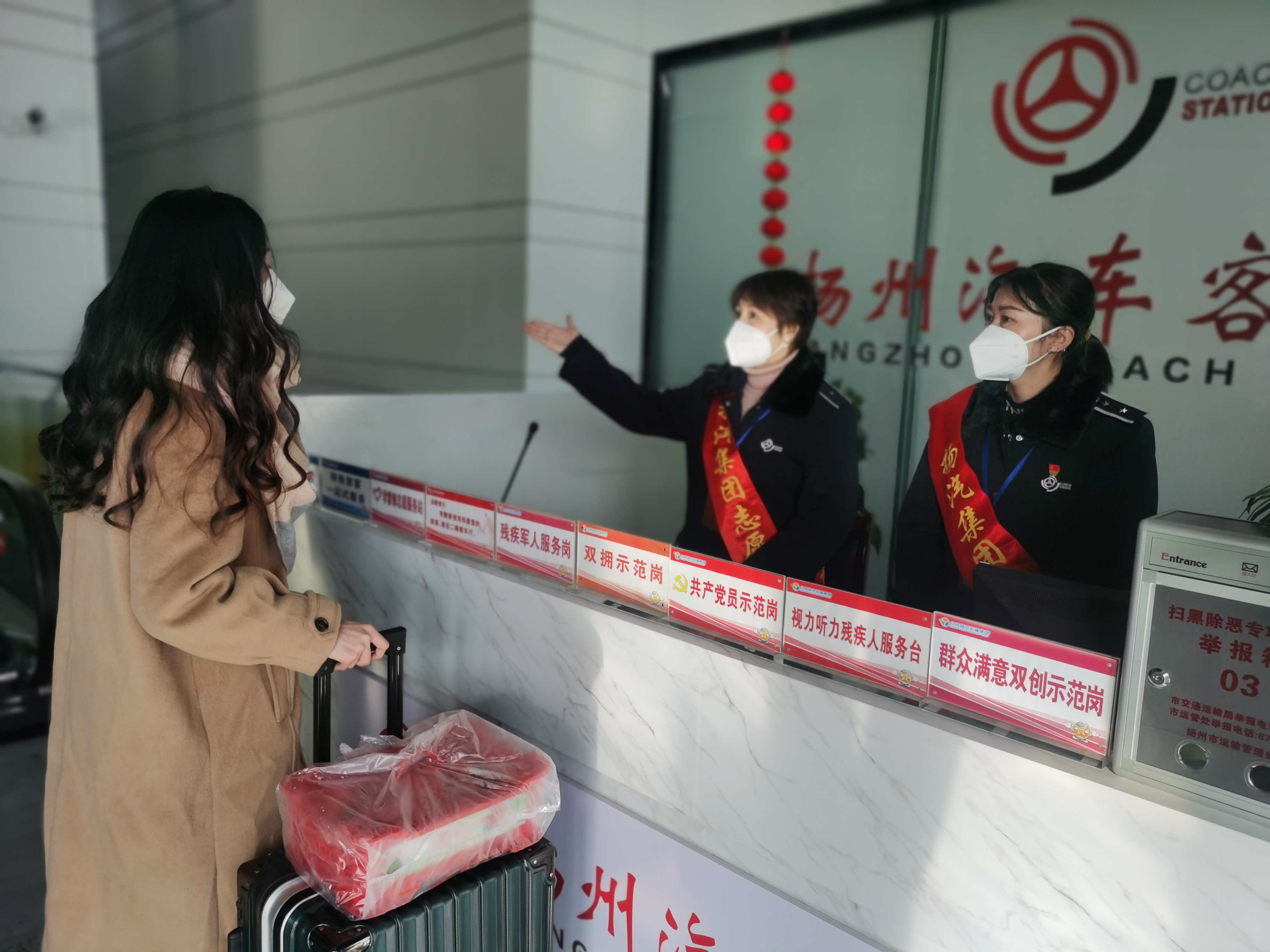 一杯杯溫暖的姜茶,一份份應(yīng)急的藥品,一句句溫馨的問候,讓沿途旅客倍感溫暖。在車站服務(wù)臺,站務(wù)員們耐心地向旅客提供乘車引導(dǎo)、維持秩序、搬運(yùn)行李等服務(wù),用體貼、周到的服務(wù)幫助每一位旅客。“我發(fā)車時(shí)間快到了,怎么坐車?”一位旅客正在用一口不怎么流利的普通話焦急地詢問著,服務(wù)班工作人員立刻上前仔細(xì)聆聽,看見旅客喘著粗氣,手里都是大包小包的行李,便推來了雷鋒車,邊放行李邊詢問旅客發(fā)車時(shí)間,工作人員在看了旅客票后發(fā)現(xiàn)離發(fā)車還有一個小時(shí),是旅客自己看錯了時(shí)間,便安慰旅客不要著急,待會我把你送去檢票口。大姐連聲說著謝謝,夸贊我們站務(wù)員的服務(wù)真好。工作人員說:“像這樣的小事每天都在發(fā)生,每次聽旅客的一聲“謝謝”我就滿足了。”