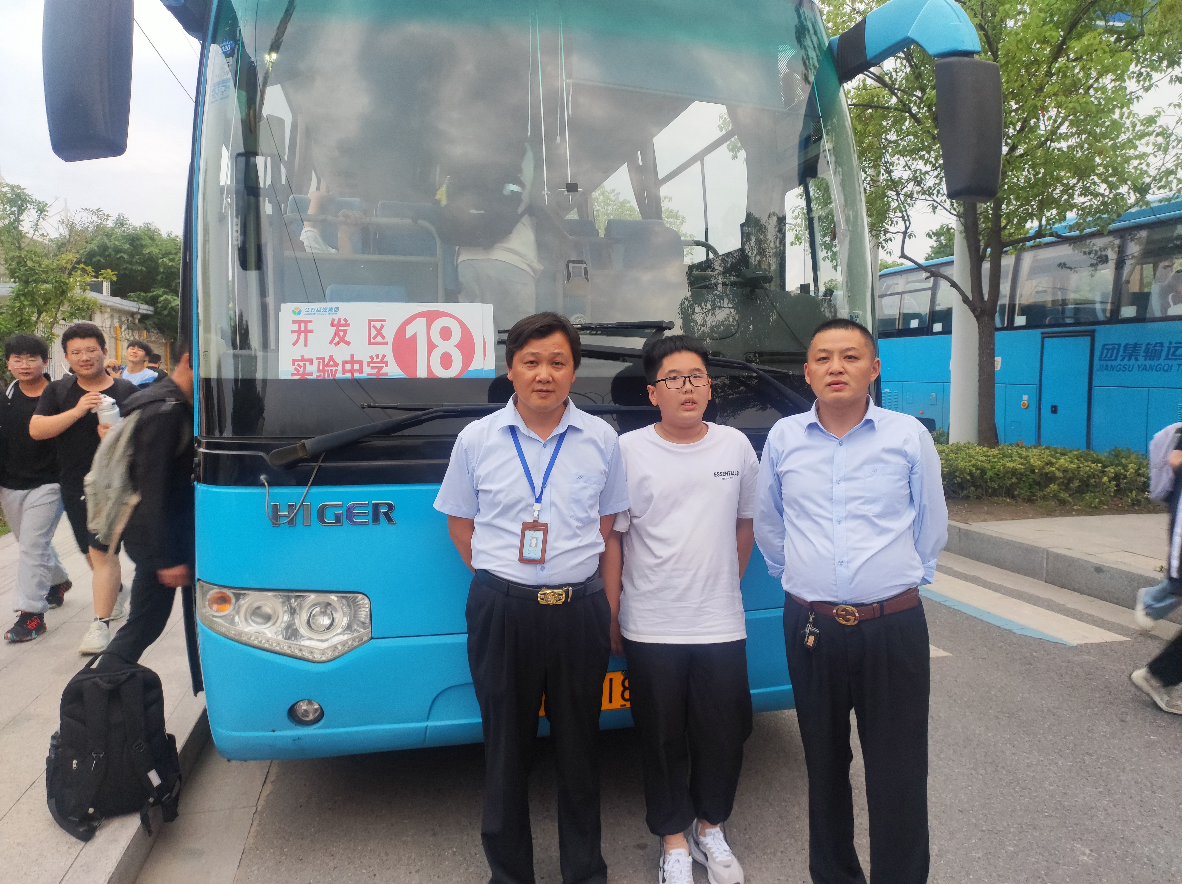 2022年9月26日晚,駕駛員葛斌師傅跟往常一樣,駕駛著經(jīng)濟(jì)開發(fā)區(qū)實驗中學(xué)專線校車,開往每一位學(xué)生回家的站臺。當(dāng)葛師傅駕駛校車接送學(xué)生到揚(yáng)子津路藍(lán)爵莊園站臺,車子停穩(wěn)后開車門并及時提醒學(xué)生過馬路注意安全,然后學(xué)生開始下車,沒過1分鐘左右就看到一輛電動車突然倒在地上,葛師傅聽到有學(xué)生喊車子撞到人了,趕忙下車查看,看見一輛電動車倒在路的北面,一名學(xué)生初一(3)班劉炫霖倒在路的南邊。葛師傅立刻走到被撞傷的學(xué)生身邊,關(guān)心的詢問學(xué)生有沒有撞傷哪里,學(xué)生說腿疼,葛師傅趕緊聯(lián)系了劉炫霖的父母,并扶著劉炫霖同學(xué)到路邊座下。然后及時上報校車班刁龍泉班長,說明情況,當(dāng)時他車上還有其他學(xué)生的接送任務(wù),刁班長安排葛師傅繼續(xù)開車送其他學(xué)生回家,并及時趕到現(xiàn)場,等家長到了后并向家長說明情況才離開。接送任務(wù)結(jié)束后,葛師傅又主動聯(lián)系了家長詢問劉炫霖的受傷情況,得知并無大礙后才放心,家長在電話里向校車駕駛員和校車班組長表達(dá)了謝意。